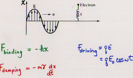A passing light wave subjects the "spring" system to sinusoidal driving...