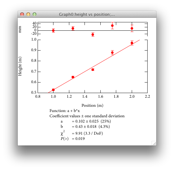 We would now like to fit a straight line to the data, taking into account the uncertainties in the height data. From the Analysis menu, select to bring up another fairly complicated dialog: