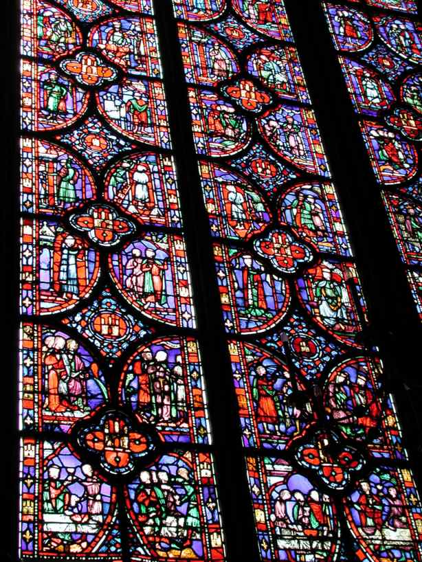 The boys were keen to see the crown of thorns, but a quick read through the pamphlet that came free with the price of admission informed us that the holy relics housed in Sainte Chapelle were scattered during the French Revolution. Those that have been recovered are now housed in Notre Dame de Paris. Whether the crown is there, I don't know. Happily, Sainte Chapelle was not destroyed during the Revolution, although I suspect that most (all?) of the windows have been redone in more modern times.