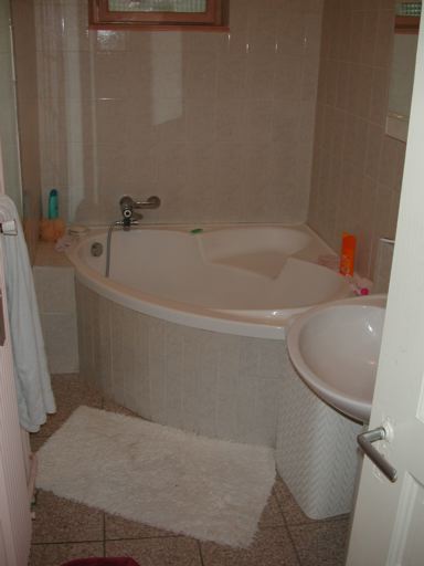 | Let’s start with the necessities. Here, the toilet is separate from the rest of the bathroom, which means that more of us can be “busy” at once, I suppose. Notice that the shower is of the French sit-down variety, which does take some getting used to. It’s plenty large, mind you, but Linda and I aren’t sure that we’ll be remodeling to eliminate the showerhead at 2611 when we get back. We’re a bit nervous about how much fun we’ll have when it’s really cold and you have to spend your time soaping in the chill air, without warm water washing over you. Well, c’est la vie. |